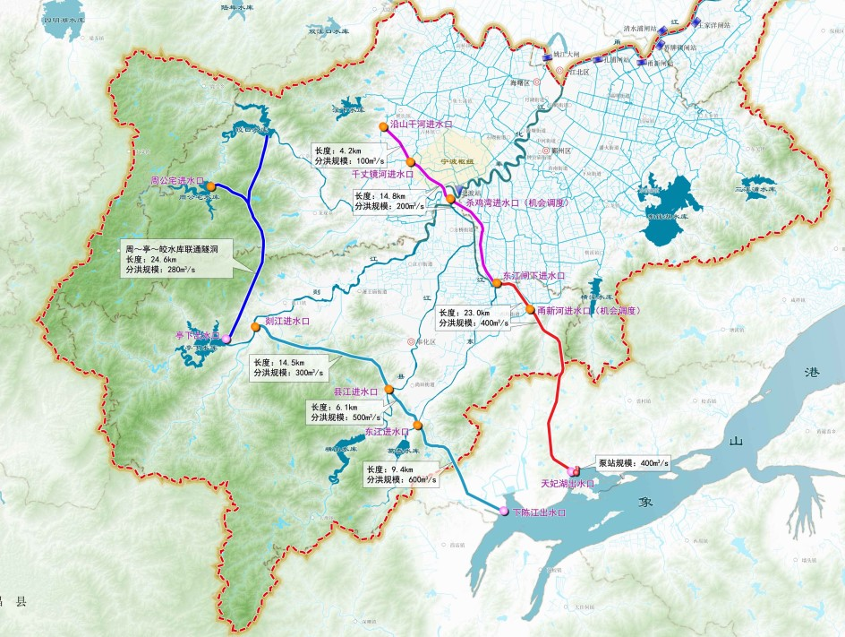 “浙東水資源配置通道寧波配水工程”前期專題研究:該項目為《浙江省水資源節(jié)約保護和利用總體規(guī)劃》中確定的重要工程,擬建一條主干線五條連接線,線路總長240公里,年引水量4.5億立方米。工程實施后可解決寧波市區(qū)、慈溪、余姚、象山等縣市區(qū)優(yōu)質(zhì)供水缺口,進一步提升我市水資源供給系統(tǒng)的韌性和風(fēng)險防控能力,保障區(qū)域供水安全。