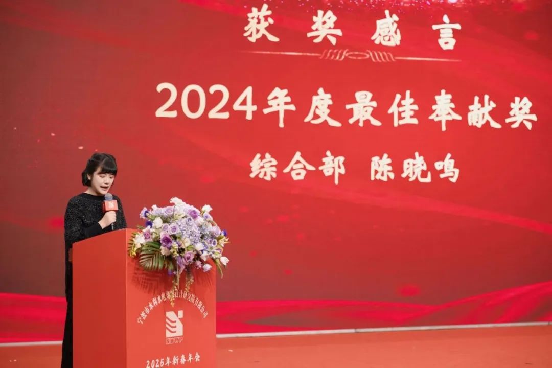 我院董事長、院長嚴(yán)文武的致辭為晚會(huì)拉開序幕。嚴(yán)院長表示,2024年,全院團(tuán)結(jié)一致,協(xié)同發(fā)力,攻堅(jiān)克難,用一張優(yōu)秀的成績單為我院新征程吹響了號(hào)角;2025年,我院新大樓的落成,這是我院發(fā)展的新的里程碑,也是邁向新征程的起點(diǎn),希望所有員工共享新家園,愛護(hù)新家園,繼續(xù)傳承和發(fā)揚(yáng)寧波院人堅(jiān)持不懈的優(yōu)良傳統(tǒng),再創(chuàng)佳績!最后,嚴(yán)院長對(duì)所有員工的辛勤付出表示感謝,致以祝福,祝愿寧波院在2025年乘風(fēng)破浪,再創(chuàng)輝煌!