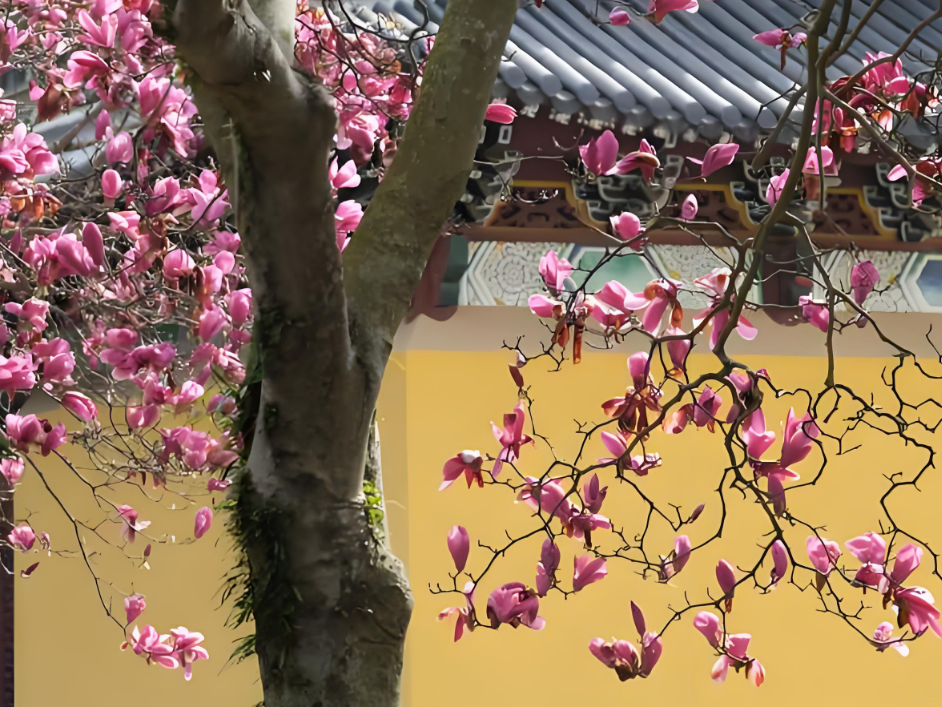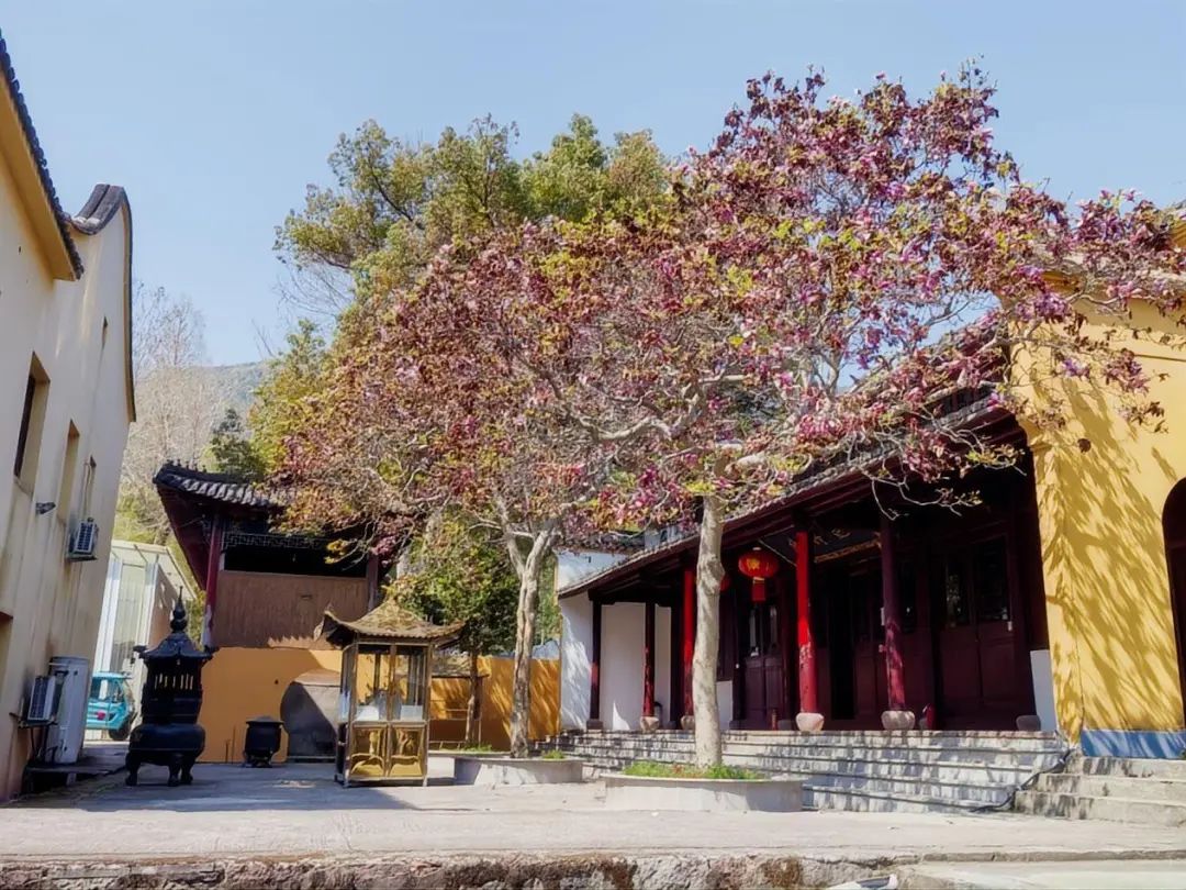 早上8:45,大巴準時從園區(qū)啟程,在陽光明媚中駛向寧波象山墻頭鎮(zhèn)舫前村。抵達智門禪寺時,茶園環(huán)繞,竹海綿延,百年紫玉蘭正值花期。大家或駐足欣賞古剎花影,或在禪寺咖啡館品鑒特色飲品,于傳統(tǒng)與現代交融中開啟這一天的芳菲之旅。