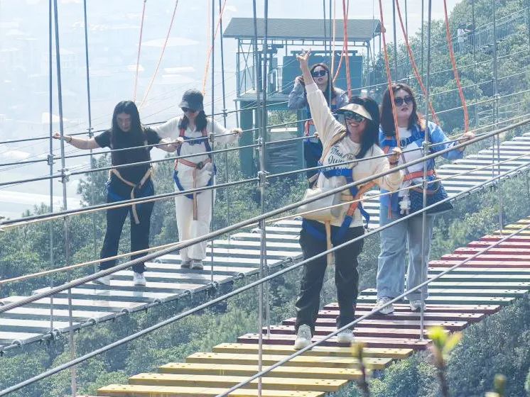 韶光爛漫,漫步尋春。午后,大家轉戰(zhàn)靈巖火山峰景區(qū),沿登山步道結伴而行,鍛煉身體之余,俯瞰浙東沿海罕見的火山口地貌遺跡。人花相映,山海相逢,既有虛空行走、高空滑翔的“挑戰(zhàn)派”,也有慢行賞景的“休閑黨”,共同享受山海交織的壯闊畫卷。