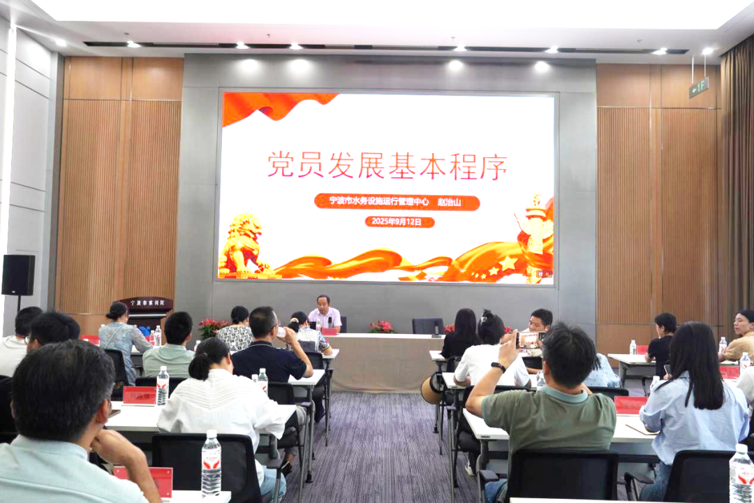 2025年9月12日上午,中共寧波市水利局直屬機(jī)關(guān)委員會(huì)在我院一樓報(bào)告廳成功舉辦黨務(wù)干部培訓(xùn)。本次培訓(xùn)以“銘記抗戰(zhàn)歷史 傳承紅色基因 賦能水利發(fā)展”為主題,旨在進(jìn)一步提升全局系統(tǒng)黨務(wù)干部的政治素養(yǎng)和業(yè)務(wù)能力,夯實(shí)基層黨組織建設(shè)基礎(chǔ)。寧波市水利局系統(tǒng)各基層黨組織組織委員近三十人參加了培訓(xùn),我院相關(guān)黨務(wù)干部一同參與。