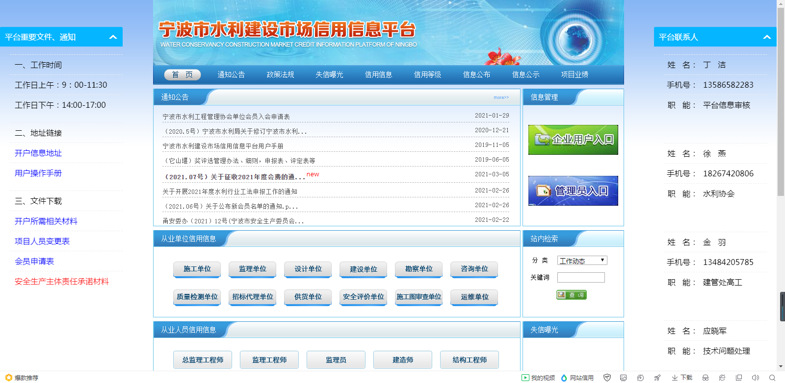 系統(tǒng)是以勘察設(shè)計(jì)、施工、監(jiān)理等水利建設(shè)市場主體及相關(guān)執(zhí)(從)業(yè)人員的信用信息為基礎(chǔ),采用B/S模式構(gòu)建水利建設(shè)市場主體各方信用信息互聯(lián)互通的網(wǎng)絡(luò)平臺,集成信用信息在線填報、市縣區(qū)分級審核、信用評價、數(shù)據(jù)統(tǒng)計(jì)、信用信息共享發(fā)布、門戶展示等業(yè)務(wù)部分,及時準(zhǔn)確地為有關(guān)水行政主管部門開展建設(shè)市場行政監(jiān)管工作和社會公眾監(jiān)督提供條件,為社會各界查詢有關(guān)信用信息提供服務(wù)。