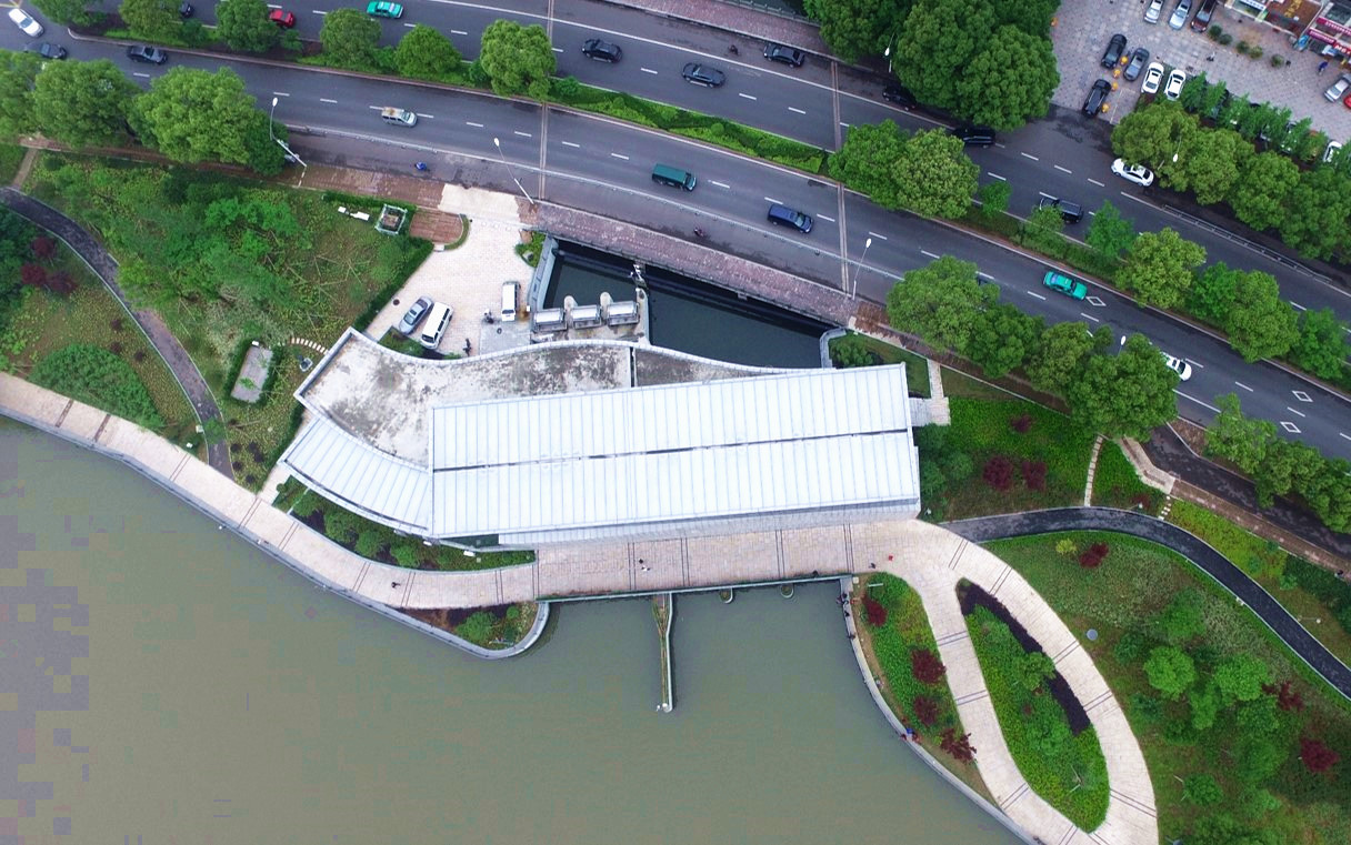 保豐碶閘站位于現(xiàn)有濱江公園范圍內(nèi),通過(guò)合理的建筑布置與現(xiàn)代的建筑設(shè)計(jì),將水利廠房與周邊的景觀進(jìn)行了有機(jī)結(jié)合,同時(shí)考慮到本工程的悠久文化底蘊(yùn),于泵站內(nèi)設(shè)置了文化長(zhǎng)廊,建成以后成為了寧波水利的一個(gè)重要對(duì)外窗口。