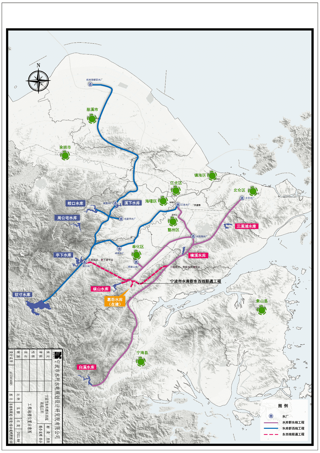 寧波市水庫群東西線聯(lián)通工程的測繪工作完成E級GPS控制點(diǎn)33個(gè),特征高程點(diǎn)200個(gè),三等水準(zhǔn)測量約50公里;1:500地形測量約19.37平方公里,其中,陸域地形約17.61平方公里,水域地形約1.76平方公里;1:200水域橫斷面測量約3公里,1:500陸域縱斷面約4公里。