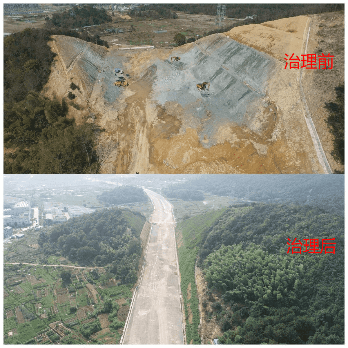 為減少工程建設(shè)水土流失隱患,該工程主要采用三維土工網(wǎng)植草、掛雙網(wǎng)植被防護(hù)、弧形U型槽、橫向?qū)?、急流槽、重力式擋墻等水土保持措施以減少水土流失。該項目為保障高邊坡不出現(xiàn)重大水土流失隱患和問題,對項目開完高邊坡進(jìn)行全時段監(jiān)測,保障高邊坡穩(wěn)定性,避免因建設(shè)施工造成水土流失從而導(dǎo)致滑坡現(xiàn)場出現(xiàn)。項目已于2021年5月完成驗收,并獲得寧波市三江交通杯優(yōu)質(zhì)工程獎。
