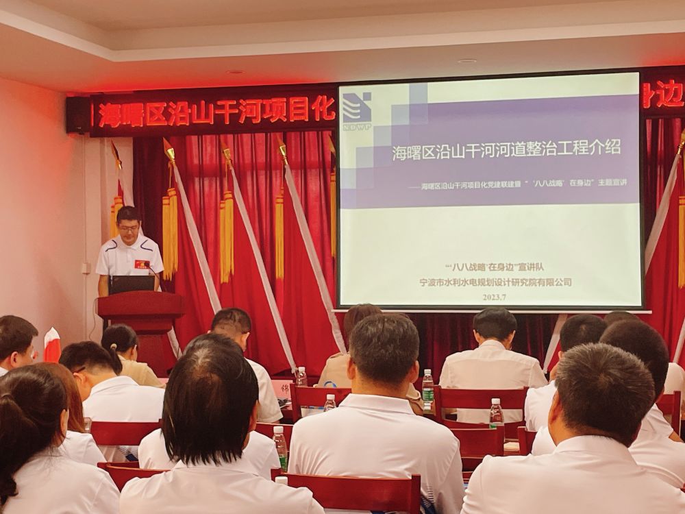 近日,海曙區(qū)直機關工委和區(qū)水利局以“五最黨建”為引領,在集士港鎮(zhèn)岳童村文化禮堂舉行沿山干河項目化黨建聯(lián)建暨“‘八八戰(zhàn)略’在身邊”主題宣講啟動儀式,我院作為沿山干河項目參建單位、活動的承辦方參與了啟動儀式。我院黨總支書記、副院長王洪霞,工程設計項目組及青年黨員代表十余人參加了上述活動。