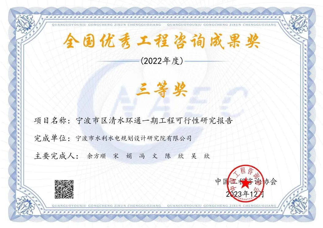 2023年我院多個項目在各類評比中脫穎而出,榮獲中國水利工程優(yōu)質(大禹)獎、國家優(yōu)質工程金獎、全國優(yōu)秀工程咨詢成果三等獎、浙江省水利科技創(chuàng)新獎、浙江省水土保持學會第三屆優(yōu)秀設計三等獎、“浙江省文明標化工地”稱號、2023 年度寧波市建設工程優(yōu)秀勘察設計獎、2023年度寧波市“甬江建設杯”優(yōu)質工程獎、寧波市水利科技創(chuàng)新獎、寧波市水利學會優(yōu)秀論文獎等各類榮譽20余項。