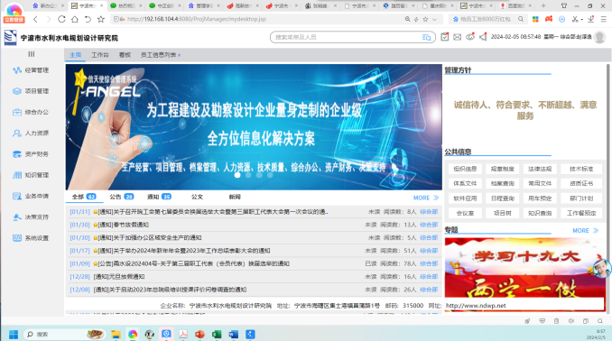 從2002年探索建設流域數字化至今,寧波院業(yè)務的數字化已走過了20多年,2023年,以事業(yè)部制轉型為契機,提出建設以OA辦公系統(tǒng)、業(yè)財一體化系統(tǒng)、知識庫系統(tǒng)為代表的管理工具,在業(yè)務數字化的基礎上,推動企業(yè)管理的數字化轉型。