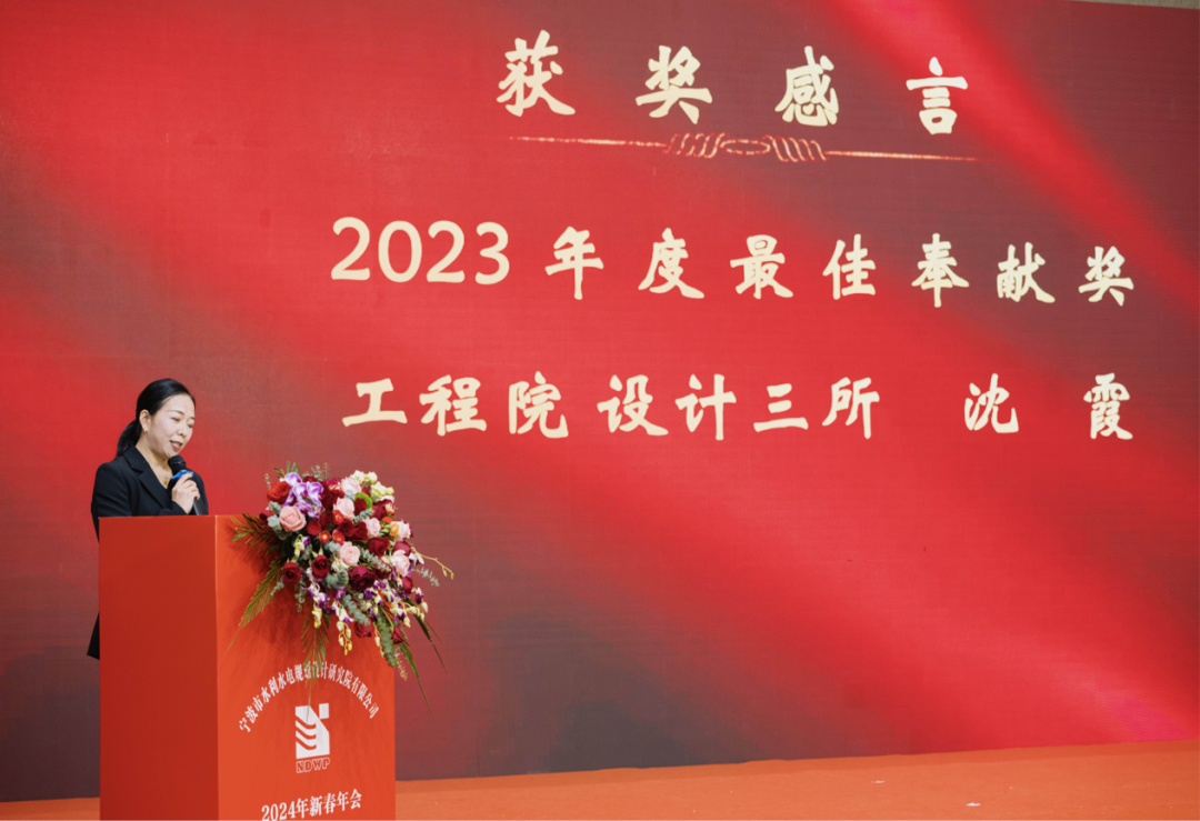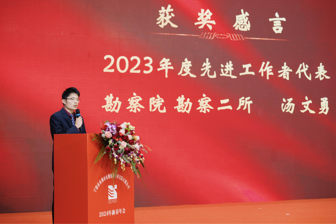 2023年度先進(jìn)工作者獲獎(jiǎng)代表勘察院勘察二所的湯文勇、2023年度最佳奉獻(xiàn)獎(jiǎng)獲獎(jiǎng)?wù)吖こ淘涸O(shè)計(jì)三所的沈霞、2023年度最佳新人獎(jiǎng)獲獎(jiǎng)代表規(guī)劃院規(guī)劃二所的魯經(jīng)宇,先后上臺(tái)發(fā)表獲獎(jiǎng)感言,以真摯的情感、質(zhì)樸的語(yǔ)言和滿(mǎn)滿(mǎn)的憧憬,表達(dá)了自己與企業(yè)共同成長(zhǎng)過(guò)程中的勵(lì)志故事和切身感悟,表達(dá)了寧波院中堅(jiān)力量、團(tuán)隊(duì)骨干和新兵后輩的豪情壯志。