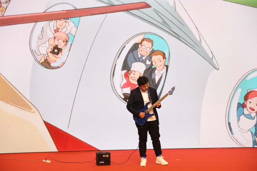 從電吉他獨(dú)奏《起風(fēng)了》到兩組回憶滿(mǎn)滿(mǎn)的歌曲串燒,《浮光》《曹操》《劍魂》《刀劍如夢(mèng)》……一首首歌曲由悠揚(yáng)動(dòng)聽(tīng)的竹笛演奏引出,而《讓我為你唱首歌》《星空物語(yǔ)》《愛(ài)的華爾茲》《拾憶》讓童年回憶躍然曲中,驚喜無(wú)限。