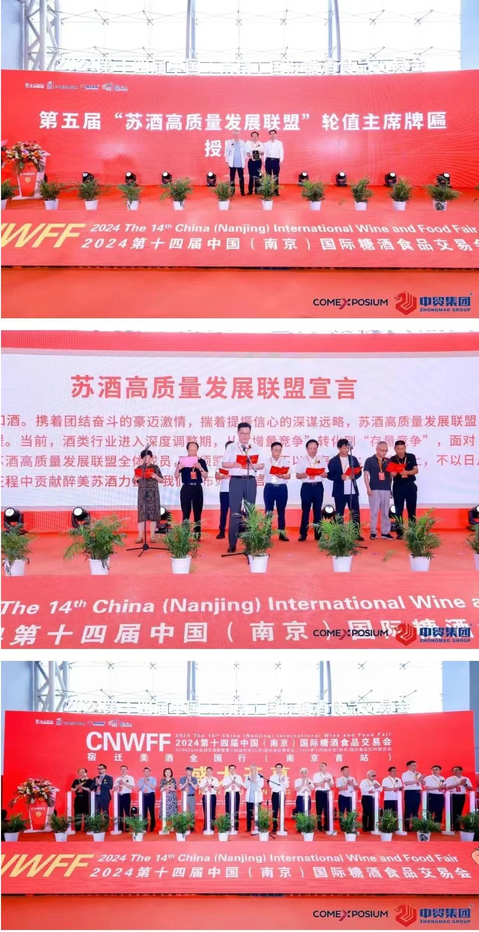第十四屆南京糖酒會(huì),由中國(guó)酒業(yè)協(xié)會(huì)、中國(guó)酒類流通協(xié)會(huì)、江蘇省工業(yè)和信息化廳、江蘇省商務(wù)廳、江蘇省工商業(yè)聯(lián)合會(huì)指導(dǎo),江蘇省財(cái)貿(mào)輕紡工會(huì)、南京市商務(wù)局支持,江蘇省酒類行業(yè)協(xié)會(huì)、法國(guó)高美艾博展覽集團(tuán)、中貿(mào)科技集團(tuán)、中法合資高博中貿(mào)國(guó)際會(huì)展集團(tuán)主辦,中法合資高博中貿(mào)國(guó)際會(huì)展(山東)有限公司承辦,宿遷市酒產(chǎn)業(yè)發(fā)展促進(jìn)中心戰(zhàn)略合作。
